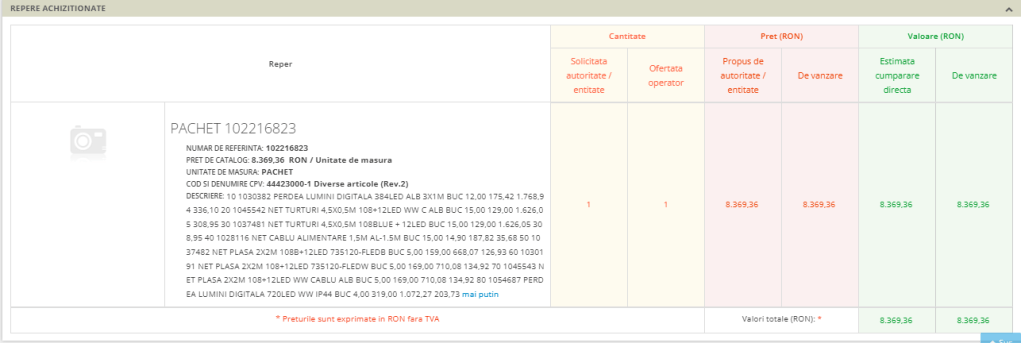 Potrivit anunțului DA32179962 din Sistemul Electronic de Achiziții Publice (SEAP), obiectele au costat 8.369,36 de lei, fără TVA, și au fost cumpărate de la Dedeman.
