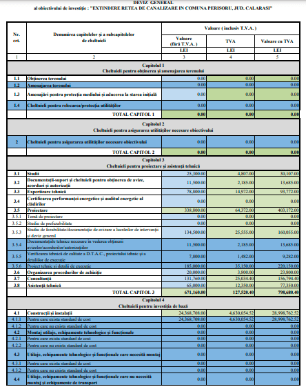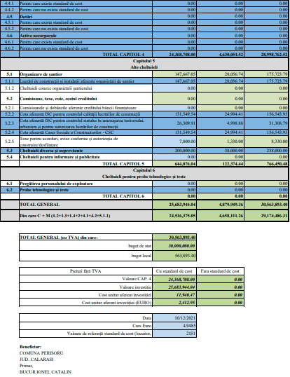 Indicatorii tehnico-economici și devizul general aferente proiectului pot fi consultate mai jos: