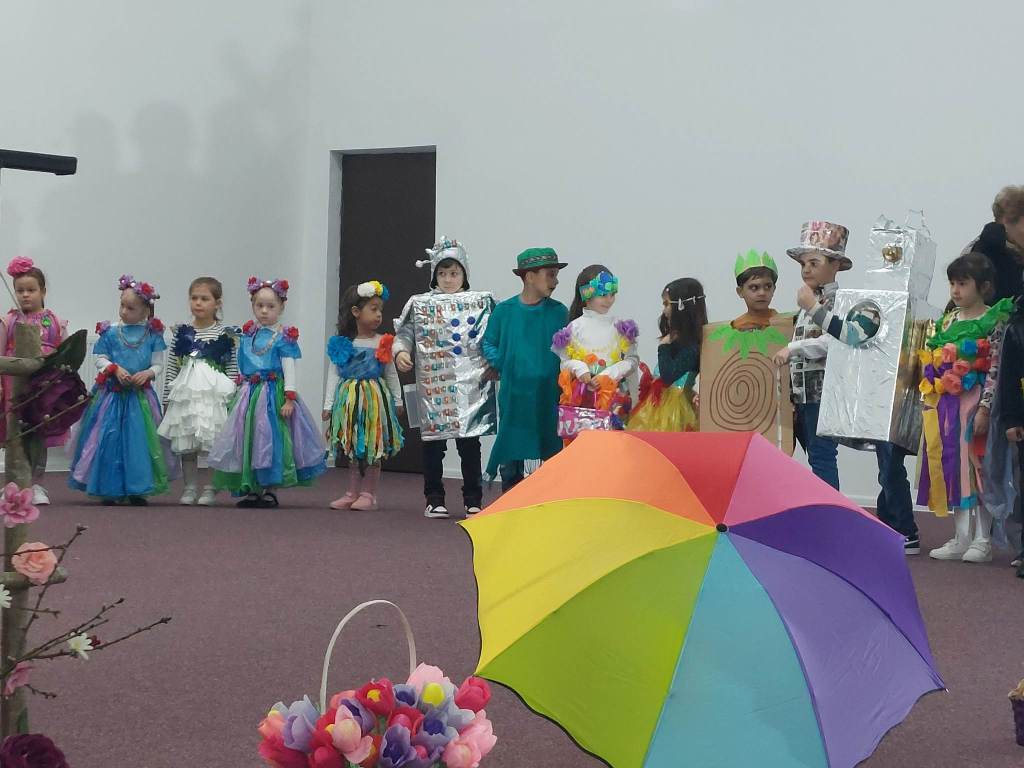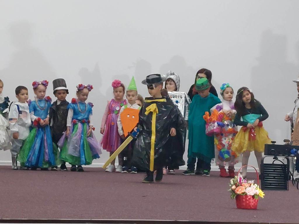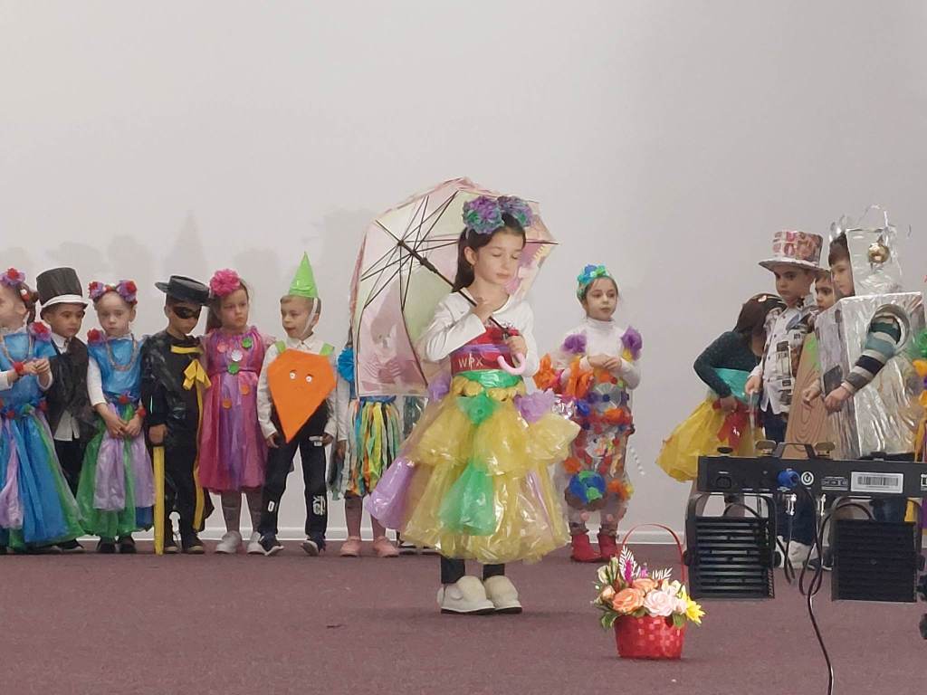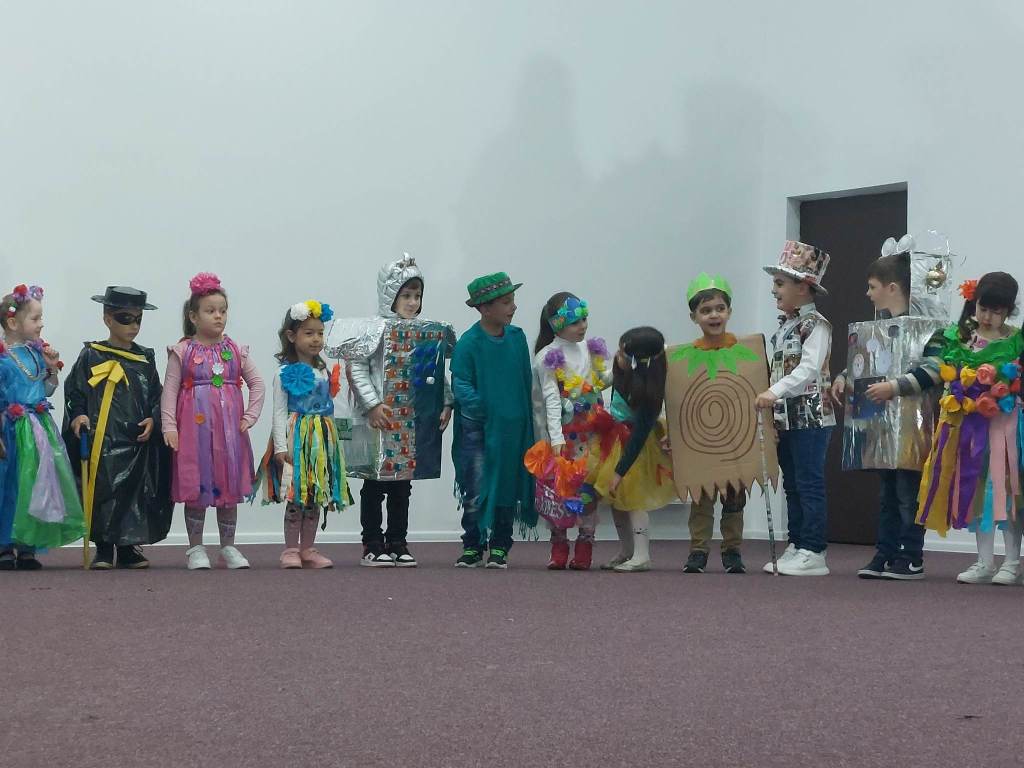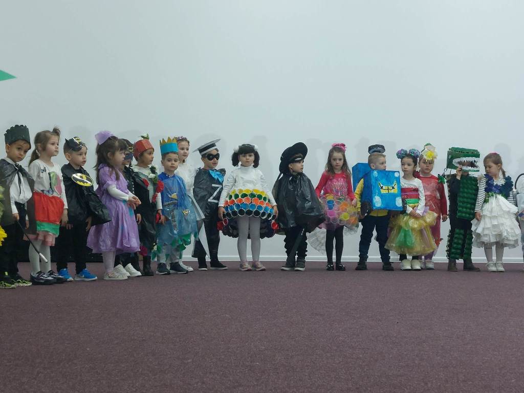Copiii au urcat pe scenă îmbrăcați în costume confecționate din materiale reciclabile, subliniind astfel tema principală a evenimentului, și anume importanța reciclării pentru dezvoltarea și menținerea unui mediu curat și sănătos. Originalitatea este cuvântul care descrie articolele de vestimentație purtate de preșcolari, articole care au fost realizate de copii, împreună cu părinții și cadrele didactice.