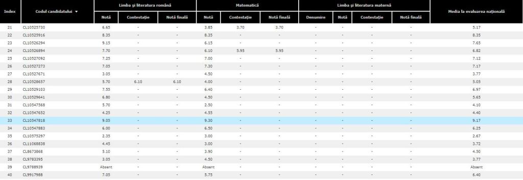 Primul dintre ei a avut inițial 6.65 la Limba și Literatura Română și 3.85 la matematică (media 5.25). În urma contestației de la matematică, nota acestuia a scăzut la 3.70, astfel că media a devenit 5.17.